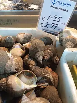 Originally, the cockles were collected by a donkey pulling a flat cart, this was replaced by pony and flat cart, and nowadays a Land Rover is used. Gathering cockles is regulated by The Burry Inlet Cockle Fishery Order, 1965.[16] Two grades of cockles are gathered: boiling cockles are smaller and cooked locally before being taken to market; shell cockles are larger and obtained by more intensive sieving, using larger-meshed sieves on the cockle beds.[16] Cockles need to be thoroughly washed clean, and cooked, so it is best to buy them from a cockle producer.[3] Fresh cockles should be soaked in a bowl of lightly salted water for 24 hours so that they clean themselves naturally.[3] A spoonful of wholemeal flour or oatmeal in the water assists the purging process.[3] Traditionally, cockles formed part of a breakfast with Welsh bacon and eggs. However, as the cockle is a small clam, it can be adapted to a wide range of cooking styles from Mediterranean to American, and they make a particularly good chowder.[3] Every year Swansea holds a Cockle Festival at the end of September, and local chefs demonstrate a wide range of dishes, using fresh Penclawdd cockles.[3]