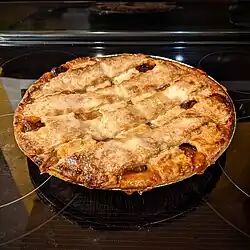 In 1614, the Dutch established several settlements in Maryland and other Northern colonies.[44] Dutch colonists introduced pancakes, waffles, doughnuts, cookies, coleslaw and pretzels into the cuisine of the Thirteen Colonies. Colonial records showed Dutch people brought their waffle irons from the Netherlands to colonial America.[45] The English and Dutch introduced pies and Dutch settlers introduced deep-dish crust pie recipes which enslaved African Americans and other Southerners adapted into their cuisine. The first documented pie recipe in Colonial America was in 1675; it was a pumpkin pie recipe modified from British spiced and boiled squash. European settlers prepared pies because they preserved food. They made meat and sweet pies using local ingredients and other ingredients from foreign countries. An article from Southern Living Magazine explains the history of the Southern American pie tradition: "The mixture of eggs, butter, sugar, vanilla, and flour made its way to the American South from England. It became popular in Virginia and has had many incarnations, from the Classic Chess Pie to fruity versions, like Lemon Chess Pie."[46][47][48][49]