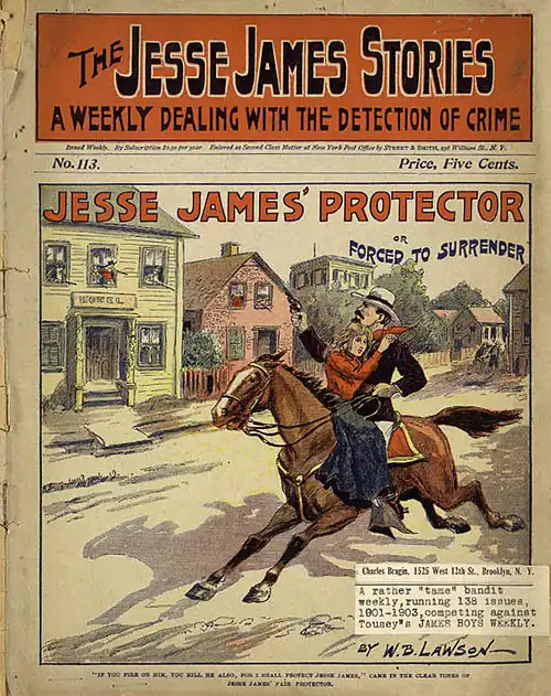 The James brothers became a staple in dime novels of the era, peaking in the 1880s following Jesse's death. James has often been used as a fictional character in many Western novels, including some published while he was alive. For instance, in Willa Cather's My Ántonia, the narrator reads a book entitled 'Life of Jesse James' – probably referring to a dime novel.