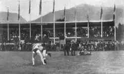 The origin of the North Country style of wrestling is a matter of debate, however most historians associate it with a long standing Celtic tradition, especially due to similarities with the Cornish and Gouren styles[1][2] and the Fédération International des Luttes Celtique classes Cumberland wrestling as Celtic.