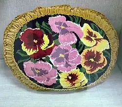 A cushion is a soft bag of some ornamental material, usually stuffed with wool, hair, feathers, polyester staple fiber, non-woven material, cotton, or even paper torn into fragments. It may be used for sitting or kneeling upon, or to soften the hardness or angularity of a chair or couch.[1] Decorative cushions often have a patterned cover material, and are used as decoration for furniture.