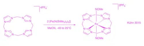 - ^ Anneser, Markus R.; Haslinger, Stefan; Pöthig, Alexander; Cokoja, Mirza; Basset, Jean-Marie; Kühn, Fritz E. (2015-04-20). "Synthesis and Characterization of an Iron Complex Bearing a Cyclic Tetra-N-heterocyclic Carbene Ligand: An Artifical Heme Analogue?". Inorganic Chemistry. 54 (8): 3797–3804. doi:10.1021/ic503043h. ISSN 0020-1669. PMID 25843109.
