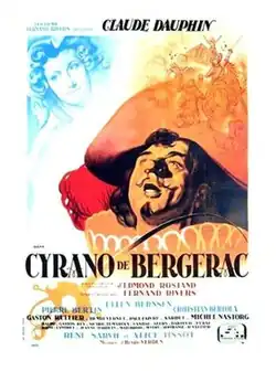 Cyrano de Bergerac is a 1946 French romantic comedy film directed by Fernand Rivers and starring Claude Dauphin, Ellen Bernsen and Pierre Bertin.[2] It is based on the 1897 play Cyrano de Bergerac by Edmond Rostand.[3]
