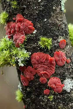 Cytidia salicina, commonly known as scarlet splash, is a species of fungus that is found growing on willows and other deciduous woody plants in Europe.[8] The spores are 12-18x4-5 um.