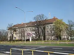 During the Second World War[38] at least 11 students were killed by the Germans.[39] When most of Poznań was seized by the Red Army yet with the German troops still holding out in the Citadel, some teachers approached the nascent Polish administration about re-opening of the school;[40] few days later the Młyńska premises were almost entirely destroyed during the final phase of the battle. An attempt to seize a non-school building still standing on the former Luisenschule plot proved unsuccessful.[41] Following a brief period when the school operated jointly with the Potocka College[42] and once a formal decision to re-open the school had been adopted,[43] recruitment took place in the former Chamber of Commerce building.[44] In 1945-1948 Dąbrówka was hosted in premises of Państwowe Liceum Pedagogiczne,[45] Zamoyska College[46] and the former Colegium Marianum.[47] The school commenced the schooling year of 1948/49 at Plac Bernardyński, in the premises taken over from another college, shut down as hotbed of reactionary education.[48] At that time the heavily damaged building at Młyńska Street was refurbished and turned into a dormitory for non-resident girls of Poznań colleges.[49]