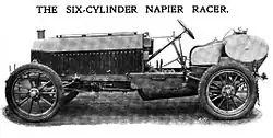James' son Montague, born 1870,[2] inherited the business in 1895, along with his father's engineering talents.[2] Montague was a hobby racing cyclist, and at the Bath Road Club, he met "ebullient Australian" S. F. Edge (then a manager at Dunlop Rubber and colleague of H. J. Lawson in London, and amateur racer of motor tricycles.) Edge persuaded Napier to improve his Panhard "Old Number 8" (which had won the 1896 Paris–Marseille–Paris), converting from a tiller to a steering wheel and improving the oiling.[3]