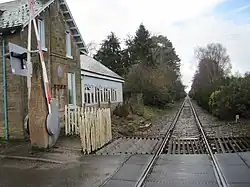 Dalcross station closed on 3 May 1965,[1] and the signal box closed on 12 March 1967.[6] The station building remains however and is now a private residence. The level crossing at the eastern end of the station is now equipped with automatic half-barriers, and is 137 miles 17 chains (220.8 km) from Perth (via Dava).[7]