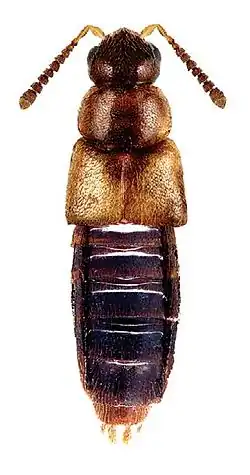 - ^ Davis, S.; Eldredge, K. T.; Parker, J. 2013: Development of the adult abdominal defensive gland in Atheta coriaria Kraatz: a key innovation for ecological and biological success (Coleoptera: Staphylinidae: Aleocharinae). Entomological Society of America meeting abstract link