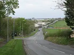 ![]() Chapelknowe Road looking west - entrance to Dalziel Park on left | |
