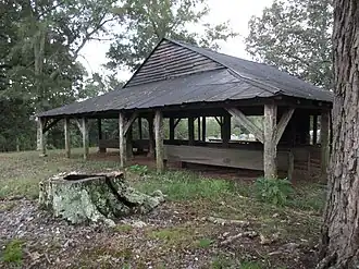 Damascus Baptist Church Arbor is a historic Baptist church arbor located in Sharpesburg Township south of Love Valley, North Carolina, United States. It was constructed in 1855, and is an open rectangular structure measuring 35 feet by 55 feet. The Damascus Baptist Church Arbor continues to be used for brush arbor revivals. It has a gable-on-hip roof and hand hewn, pegged frame, log rafters. The arbor is part of a Damascus Baptist Church complex that includes a church (built between 1907 and 1909), education building, and cemetery.[2]
