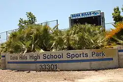 Dana Hills High School is a high school in Dana Point, California opened in 1973. The school's enrollment of roughly 2,000 students is drawn from the nearby communities of Laguna Niguel, Dana Point, Capistrano Beach, and San Juan Capistrano.