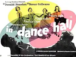 Dance Hall is a 1950 British drama film directed by Charles Crichton and starring Donald Houston, Bonar Colleano, Natasha Parry and Petula Clark. The film was an unusual departure for Ealing Studios at the time, as it tells the story about four women and their romantic encounters from a female perspective.[4]