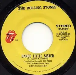 "Dance Little Sister" is a song written by Mick Jagger and Keith Richards that was first released on the Rolling Stones 1974 album It's Only Rock 'n Roll. It was also released as the B-side of the Rolling Stones single "Ain't Too Proud to Beg" and on several of their compilation albums.