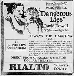 - ^ a b "Progressive Silent Film List: Dangerous Lies". silentera.com. Retrieved 13 December 2008.