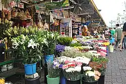 Dangwa Flower Market, also known as Dangwa or Bulaklakan ng Maynila (Flower Market of Manila), is a fresh flower market in the Sampaloc area of Manila, in the Philippines. The market is composed of small, individually-owned stalls and street vendors selling flowers wholesale and retail, at prices 50 to 90 percent cheaper than Metro Manila's flower shops. In 2004, it was home to 50 flower vendors, and most are members of the Dangwa Flower Market Association.[1] The market is centered on the crossroads of Dos Castillas Street and Dimasalang Street, spreading to adjacent roads like Lacson Avenue and Maria Clara Street.[1]