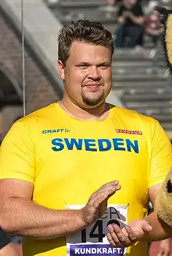 Daniel Ståhl (born 27 August 1992) is a Swedish athlete specialising in the discus throw.[2] Ståhl is the Olympic champion (2020 Tokyo) and two-time world champion (2019 Doha, 2023 Budapest), setting the new championships record in Budapest.