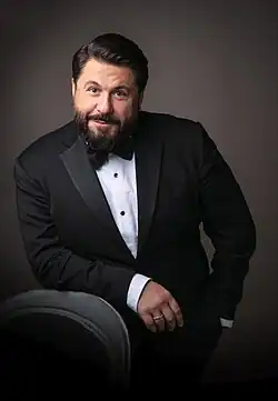 He performs the leading parts of the baritone repertoire on the stages of various opera houses in the US and Europe.[3]