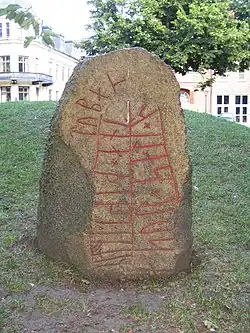 2. ^ Holtgård, Anders (1998). "Runeninschriften und Runendenkmäler als Quellen der Religionsgeschichte". In Düwel, Klaus; Nowak, Sean (eds.). Runeninschriften als Quellen Interdisziplinärer Forschung: Abhandlungen des Vierten Internationalen Symposiums über Runen und Runeninschriften in Göttingen vom 4–9 August 1995. Berlin: Walter de Gruyter. p. 727. ISBN 3110154552. Archived from the original on 10 November 2015.