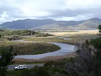 ![]() Darby River meanders looking north east from foot of Darby Hill | |