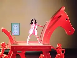 "Dark Horse" was first performed at the iHeartRadio Music Festival in Las Vegas on September 20, 2013.[85] It was later performed at the iTunes Festival in London.[86] Perry also performed the song with Juicy J at the We Can Survive event at the Hollywood Bowl on October 23.[87] Perry also performed "Dark Horse" on The Voice of Germany on December 13, 2013.[88] Perry and Juicy J performed the song at the 56th Annual Grammy Awards on January 26, 2014. The "dark and mysterious" performance featured a "haunted forest" design with animatronic horses, broomstick pole dances, and a controlled fire.[3] The singer also performed the song at the 2014 BRIT Awards and the performance featured a neon-colored Egyptian theme, like the music video.[89]