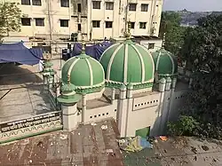 Daroga Amir Uddin Mosque (Bengali: দারোগা আমির উদ্দিন মসজিদ, romanized: Dārogā Āmīr Uddīn Mośjid) is a three-domed mosque located in Babu Bazar, Dhaka, Bangladesh, on the banks of the Buriganga River.[1] Locally known as the Ghat Mosque (Bengali: ঘাট মসজিদ, lit. 'riverbank steps mosque'), the structure has stood for almost two centuries in Old Dhaka.[2] The mosque compound includes the founder's mausoleum and an adjacent cemetery.[2][3]