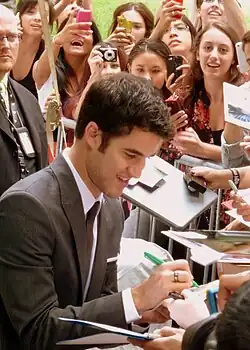 Criss has appeared on the magazine covers of Billboard,[101] Entertainment Weekly,[102] Out,[103] Playbill,[104] TV Guide,[105] Da Man,[106] GT,[107] Prestige,[108] and Essential Homme.[109] Criss is featured in the fall ad campaign (2011) for Uniqlo, a Japanese clothing line.[110] Criss was named one of People's Sexiest Men Alive (2011),[111] and was ranked No. 1 on AfterElton's "Hot 100" list (2011 & 2012),[112][113] and No. 1 on GQ's "30 Under 30: The Most Stylish Young Men In Hollywood" list (2012).[114]