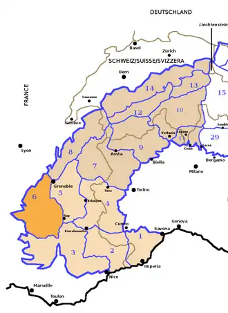 Borders onProvence Alps and Prealps, Dauphiné Alps and Savoy Prealps