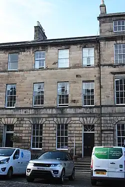 He is buried with his parents amongst the trees in the section north of the vaults in Warriston Cemetery.[3]