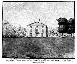 Barclay bought the manor of Youngsbury in Hertfordshire in 1769, and enlarged the house there. A plan by Capability Brown for Barclay in 1770 introduced a serpentine lake.[20] He sold it in 1793, after the death of his second wife, to William Cunliffe Shawe, and it passed in 1796 to Daniel Giles,[21] Governor of the Bank of England.
