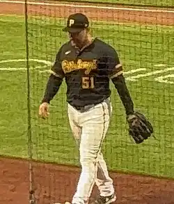On January 19, 2021, Bednar was traded to the Pittsburgh Pirates as part of a three-team trade that also sent Omar Cruz, Drake Fellows, Hudson Head and Endy Rodríguez to the Pirates, Joe Musgrove to the Padres and Joey Lucchesi to the New York Mets.[14] In his first full season in the major leagues, Bednar was 3–1 with a 2.23 ERA and 77 strikeouts in 61 appearances. Bednar received a single vote in National League Rookie of the Year voting, tying him for eighth place with Vladimir Gutiérrez.[15]