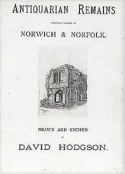 - Hodgson, David (1842). Antiquarian Remains Principally confined to Norwich and Norfolk. OCLC 656134492. Copies held at the Millennium Library in Norwich, and at the University of East Anglia. The plates, based on earlier sketches,[48] were in preparation for least five years.[36]