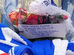 The news of Cooper's death was met with widespread sadness from across the country and the footballing world, much of which is still felt today. Supporters of Clydebank, Rangers and Motherwell left tributes outside their respective grounds.[69] Jock Wallace Jr. (who had signed Cooper for Rangers in 1977) said: "My feelings go out to his family and loved ones, who will have to be strong through this ordeal." The (then) Scottish Football Association chief executive Jim Farry stated: "It is tragic that one with such skills and knowledge will no longer be able to impart them to young players."[74]