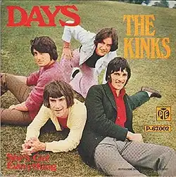 "Days" is a song by the English rock band the Kinks, written by Ray Davies. It was released as a non-album single in June 1968. It also appeared on an early version of the album The Kinks Are the Village Green Preservation Society (released only in continental Europe and New Zealand). It now appears as a bonus track of the remastered CD. On the original Pye 7N 17573 label, the name of the song is "Day's" owing to a grammatical error.