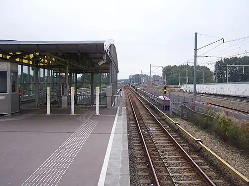 On 1 June 1997, metro line 50 opened next to the station and the metro stop was called De Vlugtlaan.[3] The original construction of the railway station needed to be amended by demolishing one of the stairs leading to the railway platforms and half of the station hall. The railway station had to close in May 2000 due to the construction of the Hemboog.[4]