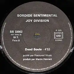 "Dead Souls" was originally released on 18 March 1980 by the label Sordide Sentimental as a France-only 7" single under the title "Licht und Blindheit" (German for "Light and Blindness"). It was limited to 1578 copies[5] and featured "Atmosphere" as the A-side and "Dead Souls" as the B-side. John Peel played "Atmosphere" for the first time on his show on 11 March 1980 and "Dead Souls" the following night.[6] Neither song appeared on a studio album or on a UK single prior to Curtis' death. Bassist Peter Hook reflected, "In a way, that was part of the lightness of Joy Division, was that we weren't precious about the music—we were giving tracks away. ... We gave 'Dead Souls' away. It was like, 'Yeah? Really?' 'Don't worry about it we'll just write another one.'"[7]