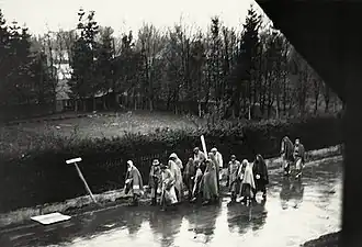 In January 1940, the Germans deported a group of prisoners from the Lipowa 7 prisoner of war camp to Biała Podlaska and then to Parczew. They rushed them on foot among snowstorms and temperatures below −20 °C (−4 °F). Those POWs who did not follow orders were killed by the German guards. The inhabitants of the nearby villages were forced to collect and bury the bodies in mass graves. Only a small group of prisoners survived this march of death. A few were able to escape into the woods and join the partisans.[12]