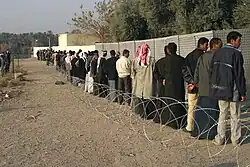 Iraqis wait in line to vote