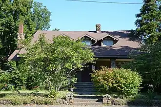 The Deener House is a historic house at 310 East Center Street in Searcy, Arkansas. It is a 1+12-story Bungalow/Craftsman style house that was designed by noted Arkansas architect Charles L. Thompson and built in 1912. It has the low-slung appearance typical of the Bungalow style, with a side gable roof that extends across its full-width front porch, where it is supported by fieldstone piers, and shows exposed rafters. Three small gable-roof dormers are closely spaced near the center of the otherwise expansive roof.[2]