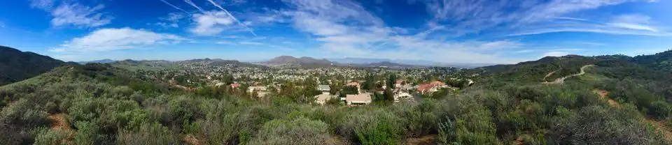 Panoramic view of Newbury Park with the Conejo Mountains in the far back. Taken from the Los Robles Trail.