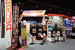 Deestone (Thai: ดีสโตน) is a Thai multinational tire manufacturer based in Om Noi, Samut Sakhon in central Thailand. It is the country’s largest Thai-owned tyre production facility.[1] The company has five plants as well as subsidiaries in Samut Sakhon and Nakhon Pathom. In 2015, Deestone had a total investment around 10 billion baht with a production capacity of more than 10 million units/year.[2] Deestone has 10,000 employees and 600 dealers throughout Thaliand, and exports to for more than 120 countries worldwide. The company also makes motorcycle, truck, bicycle, and agricultural tyres.[3][4]