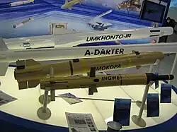 • Project Assegaai: A fifth-generation air-to-air missile jointly developed by Denel Dynamics and Brazil's Mectron, Avibras, and Opto Eletrônica. Designed to equip the Brazillian Air Force and South African Air Force's Gripen fighters, the A-Darter offers high agility, infrared homing, and counter-countermeasure capabilities.[23]