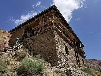 As in other the most distant mountain villages of Boysun District, such as Alachapan, Kurgancha or Dugoba, Dehibolo has retained original architecture, where houses are built, with the exception of corrugated sheet metal roofs, of locally available timber, stone and clay. Due to scarcity of water, all of it brought on foot, homes in the village were equipped with dry toilets. Cooking was mostly done on gas stoves, with 50-liter liquefied gas cylinders supplied to the village from the service center for storage and distribution of domestic gas in Dugoba.[8][11][12]