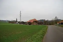 Farm houses and fields in Diesswil