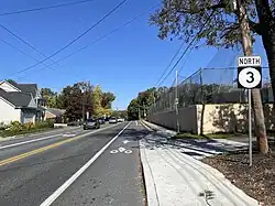 What is now DE 3 existed as a county road by 1920.[5] Four years later, the road was upgraded to a state highway between Philadelphia Pike and Harvey Road.[6] The state highway was extended north to Naamans Road by 1931.[7] By 1968, DE 3 was designated to run from US 13 (now US 13 Bus.) north to DE 92 along Marsh Road.[2] DE 4 was extended onto the Washington Street Extension portion of present-day DE 3 three years later.[8] DE 4 was removed from Washington Street Extension by 1981.[9] Three years later, DE 3 was extended to I-495 in Edgemoor. At this time, DE 3 was realigned to follow Washington Street Extension from Marsh Road to a concurrency with US 13 Bus., heading southwest along that route before heading southeast along Edgemoor Road.[10]