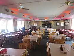 Kolarik was also a minor genius at getting publicity for the restaurant. For example, during the winters, Kolarik would flood the roof of the restaurant and hire local youths to ice skate on top of it. A cocktail lounge wing was added in 1956; that was the building's last major alteration.[1] However, in the end, Kolarik's creative marketing ideas weren't enough to overcome other obstacles. The Interstate Highway System in the 1950s forced roads such as Route 66 to reroute onto superhighways, and the restaurant was eventually bypassed by the construction and opening of I-55 during the late 1950s to early 1960s, which cut off its access to major traffic on this important highway.[1][2]