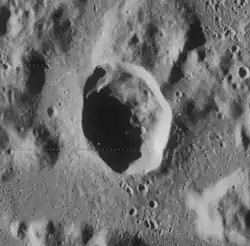 Delmotte is a small lunar impact crater that lies just to the east of the much larger crater Cleomedes, and to the north of the Mare Crisium, in the northeastern part of the Moon. It was named by the IAU in 1935.[1]