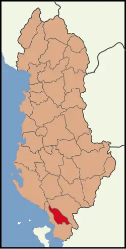 Delvinë District (Albanian: Rrethi i Delvinës) was one of the 36 districts of Albania, which were dissolved in July 2000 and replaced by 12 counties. It had a population of 10,859 in 2001, and an area of 367 km2 (142 sq mi).[1] Its population included a substantial Greek community.[2][3] The district is in the south of the country, and its capital was the town of Delvinë. Its territory is now part of Vlorë County: the municipalities of Delvinë and Finiq (partly).