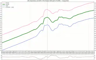 Life expectancy in Kyrgyzstan since 1960 by gender