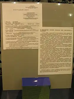 Award application of Denis Vetchinov, Central Armed Forces Museum, August 15, 2008