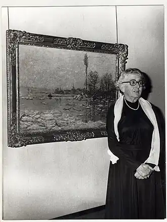 ![]() Portrait of donor Denise Masson (1901-1994) in front of the painting by Claude Monet, "La Débâcle". | |